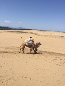 連休より風邪が長引いている山田です。 GW連休中盤に鳥取砂丘に行ってきました。 家から車で二時間半程度と意外に近くて驚きました。 子供はというとラクダに乗れて大満足。その後、子供の勢いに任せて砂丘をあがったり下ったり。砂場の急な斜面を上まで登るのは近年まれにみるしんどさでした。 また季節を変えて足を運んでみたいです。